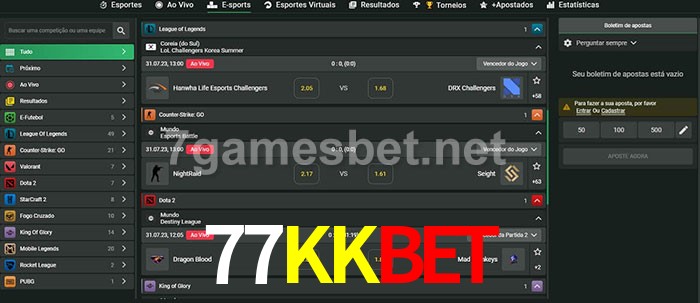 O 77KKbet oferece uma grande seleção de opções de apostas em e-sports com probabilidades competitivas